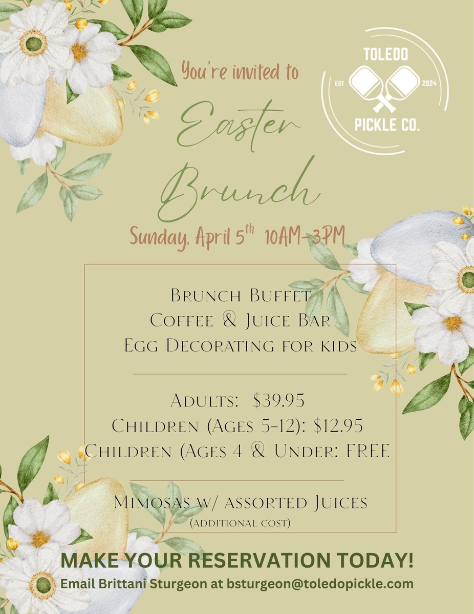 RESERVE YOUR TABLE TODAY! Email Brittani Sturgeon - bsturgeon@toledopickle.com